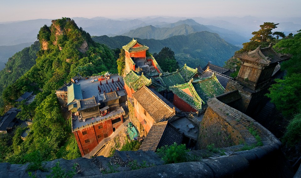 武当山以宏伟的建筑规模著称于世。其古建筑始建于唐、宋、 元、明、清均有修建,在明代达到鼎盛。共建有三十三个建筑群,100余万平方米;历经数百年沧桑,现仍存有近5万平方米。其整个建筑系按照“真武修仙”的道教故事,采取皇家建筑法式,统一设计布局。其规模的大小,间距的疏密都恰到好处,因山就势,错落有 致,前呼后应,巧妙布局。或建于高山险峰之巅,或隐于悬崖绝壁之内,深山丛林之中,体现了建筑与自然的高度和谐,达到了“仙山琼阁”的意境,被誉为“我国古建筑成就的展览”,1994年武当山古建筑群被列入“世界文化遗产名录”。